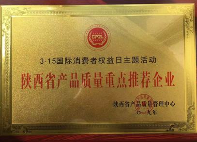 熱烈祝賀:我公司在3.15國際消費者權益日主題活動中獲得陜西省產品質量重點推薦企業!
