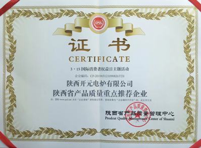 Congratulations: Our company won the recommendation of Shaanxi Provincial Product Quality in the theme activity of 3.15 International Consumer Rights Day!